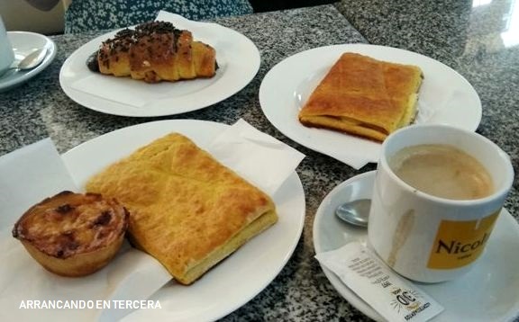Comenzamos la mañana desayunando en Zarzuela, una panadería-pastelería con muchísimos productos sin gluten encontrada por Influencer a la Fuga en la Rua Bernardino da Costa. Rico y barato: por 12€ compramos dos cafés con leche, dos arrollados de jamón y queso, un Pastel de Belém, un croissant de chocolate y otro de jamón y queso (aprovecho para pillar desayuno gluten-free para el día siguiente).