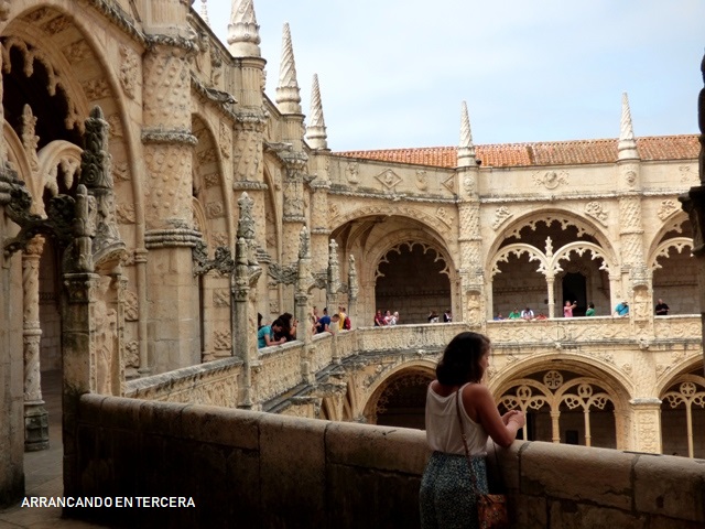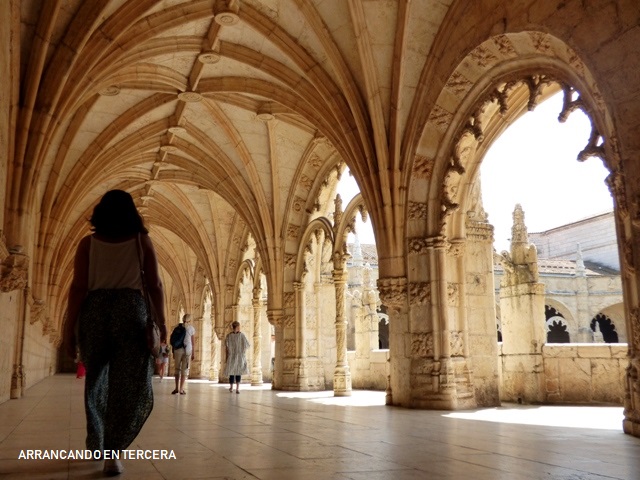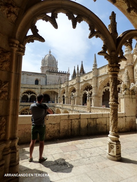 El Monasterio de los Jerónimos es de estilo manuelino, un tipo de arquitectura portuguesa que mezcla elementos góticos y renacentistas –estilo que también puede observarse en la Torre de Belém. Todos los elementos arquitectónicos están colmados de grabados y figuras talladas; como vamos por libre nos quedamos sin conocer los simbolismos ocultos entre tanto detalle (hay iconos marítimos, religiosos…).