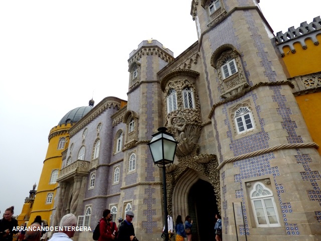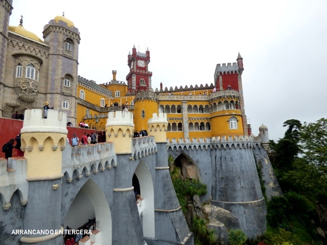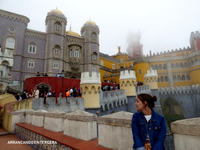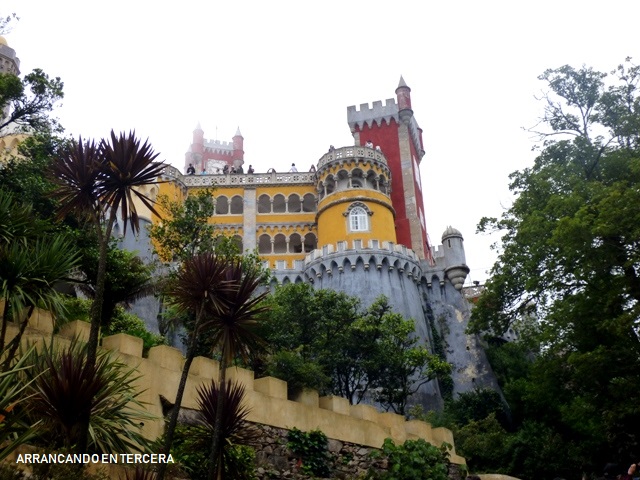 Tras 15 minutos de autobús llegamos a la parada, donde tienes dos opciones: caminar cuesta arriba 5 minutos por bonitos parajes boscosos o comerte otra cola y volver a pagar para coger un minibus que te deja a la puerta del palacio. Nosotros evidentemente escogimos la primera y finalmente llegamos al majestuoso PALACIO DA PENA, que debe el nombre a la ubicación donde se encuentra: en lo alto de una colina (peña).