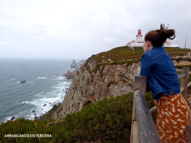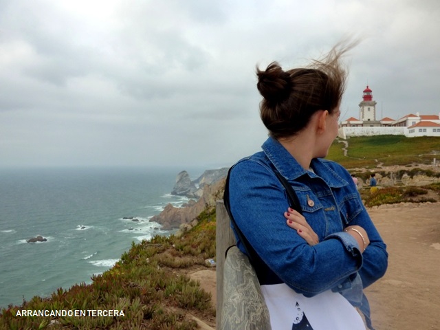 Regresamos al coche, tomamos un café en la pequeña terraza con vistas de Botica Saloia y ponemos rumbo hacia Cabo da Roca. Atravesamos los bosques de Sintra y el GPS del coche de nuevo hace de las suyas llevándonos por algún caminito desierto pero al fin y al cabo, nos estamos acercando a lo que en su día se denominó «el fin del mundo». En menos de media hora llegamos y no hay problemas para aparcar.