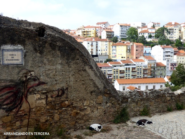 Como hemos entrado por el acueducto, decidimos salir por otra parte para acortar y aparecer directamente en la parte vieja de la Universidad. Sale bien la jugada, pero para ello tenemos que subir unas cuantas escalinatas y rampas que nos hacen preguntarnos cómo es posible que todo esté cuesta arriba en esta ciudad. Justo al salir del Jardín Botánico hay unas bonitas vistas de la ciudad partida en dos por el río Mondego.