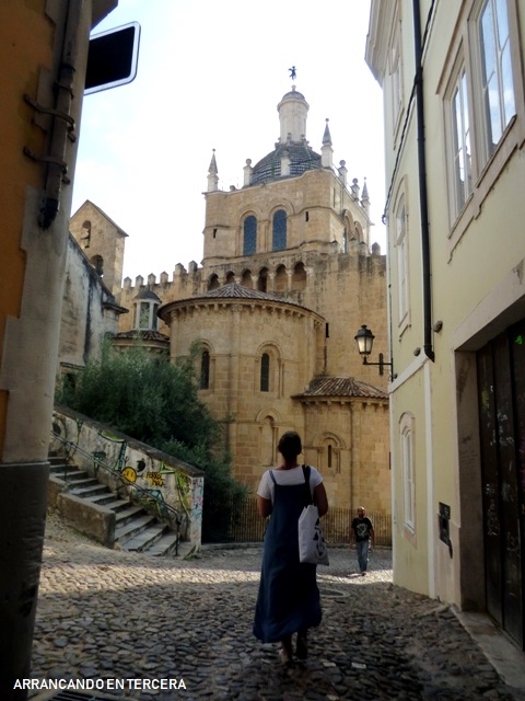 En hora y cuarto llegamos a nuestra próxima parada: COÍMBRA. Peaje 8€. Aparcamos cerca del Mercado Municipal, en un parking público donde metemos 1,60€ para unas 2 horas. De ahí caminamos unos 15 minutos hasta llegar a un centro histórico en cuesta arriba permanente. Por cierto, el sol que se había ocultado quitándonos las ganas de baño en Nazaré decidió salir esplendoroso para acompañarnos en nuestra visita turística cuesta arriba.