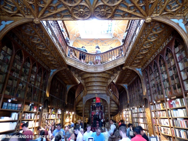 Una vez en tierra firme nos dirigimos hacia la LIBRERÍA LELLO, considerada por muchos como la más bonita del mundo y el punto turístico Nº1 de la ciudad. Como hemos dicho, suele haber unas colas que escapan a los ojos pero tenemos un golpe de suerte utópico y entramos nada más llegar. Eso sí, el interior es otro cantar, pues hay tal concentración de gente que parece mentira que te encuentres en una librería. Lo que no se puede negar es que el lugar es precioso, con estanterías de cuento y libros icónicos en una gran variedad de idiomas.