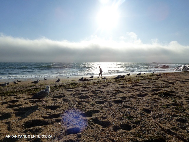 El destino elegido es la PRAIA DOS INGLESES. Muy tranquila, con poca gente y eso sí, bastante viento. Mis esperanzas de baño en Porto se van al traste cuando meto las piernas en el Atlántico. «Copón, qué fría». Nos tumbamos en una zona resguardada del viento y pasamos la tarde entre los centenares de gaviotas que tienen colonizada la playa.