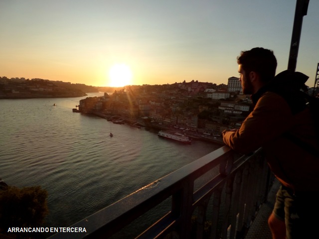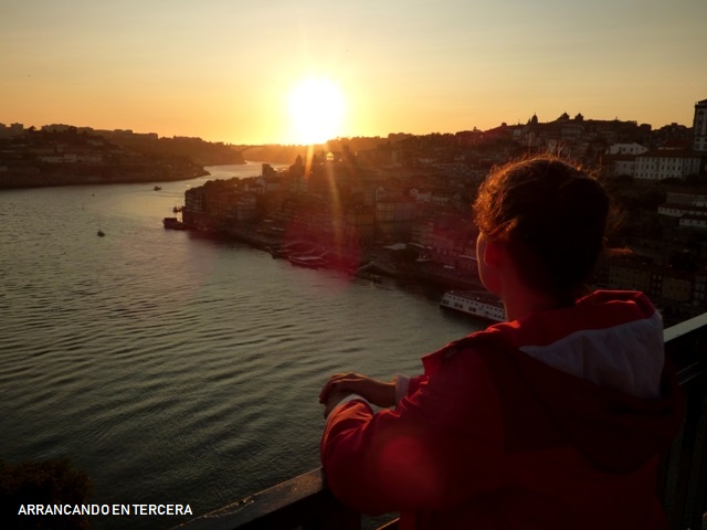 El Faro de las Felgueiras tiene toda la pinta de ser un buen lugar para ver atardeceres pero no queremos renunciar otra vez a nuestra cita con el Puente Luis I, así que retomamos el bus rumbo hacia Porto. Una vez en el puente, nos asombramos de la ingente cantidad de gente que se ha congregado en Vila Nova de Gaia para presenciar el anaranjado atardecer sobre Porto.