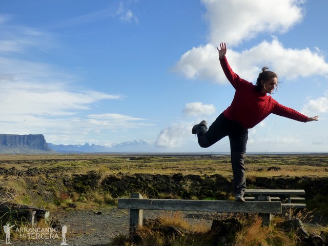 Al principio nos paramos en cada remanso que vemos, disfrutando del paisaje y haciendo mil fotografías hasta que el viento islandés amenaza con llevarse volando nuestro trípode.