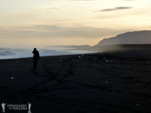 El viento y el anochecer nos obligan a retirarnos antes de lo que nos gustaría. Regresamos al camping de Skaftafell por la noche.