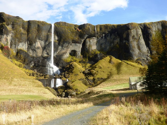 La cascada SVARTIFOSS significa «cascada negra» debido a las columnas verticales de basalto (de origen volcánico) que la rodean. Parte de su belleza radica en su ubicación: está encajonada en medio de un pequeño cañón boscoso. Eso sí, suele estar atestada de gente debido a su popularidad y cuenta con más infraestructura que otras.
