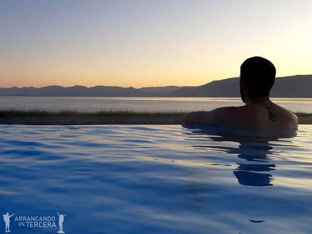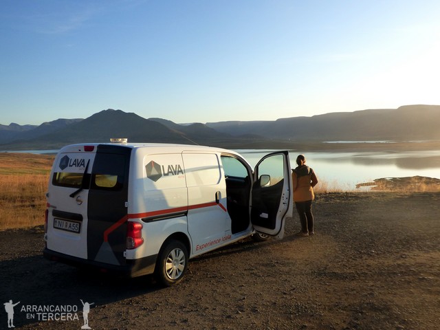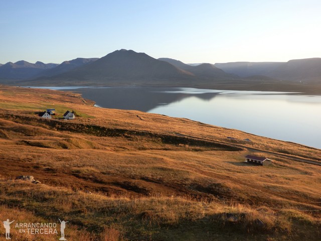 Continuamos bordeando los fiordos de Tröllaskagi, «la península de los trolls». Conducir por este país es una verdadera delicia, no hace falta ir a los puntos de interés porque aunque no haya nada, lo tiene todo. A ratos el asfalto se convierte en grava, una rampa por arriba y por abajo, unas cuantas curvas sin quitamiedos, ovejas en la carretera, no hay apenas coches… Y, antes de que nos demos cuenta, ¡es la hora termal!