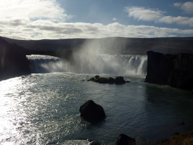 Sobre el año 1.000 d.C., Þorgeir (hombre de leyes del Alþingi por aquel entonces) fue obligado a elegir la religión oficial del país, entre el paganismo y el cristianismo que trataban de imponer los colonos noruegos recién llegados. Para evitar el conflicto, Þorgeir eligió convertir la isla al cristianismo y arrojó los iconos paganos de la isla (mediante los cuales adoraban los vikingos islandeses a sus dioses) en esta cascada; de ahí el nombre de la misma. Mis fotos quemadas no hacen justicia al lugar.