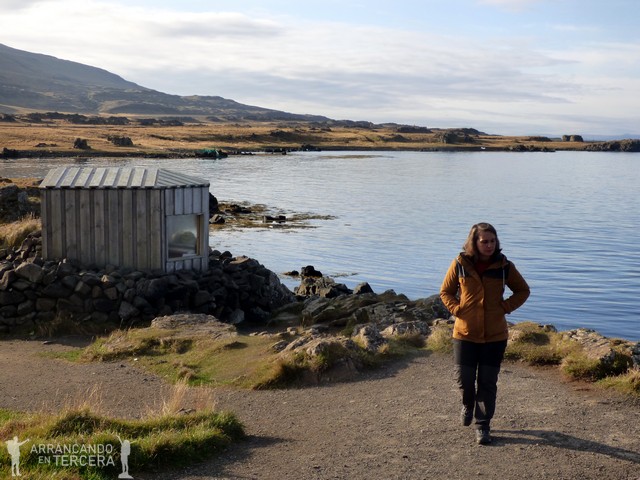Nuestra próxima parada es ILLUGASTADIR, otro de los lugares más recomendados para avistar focas salvajes. Aunque el GPS indica 45 minutos desde la playa de Osar, el camino de grava es muy aceptable y se tarda la mitad. Se trata de una finca privada cuyo propietario muy amablemente ha señalizado con imágenes de focas cómo llegar y dónde aparcar. No se cobra entrada, pero hay un buzón para que cada uno muestre su agradecimiento como mejor considere.