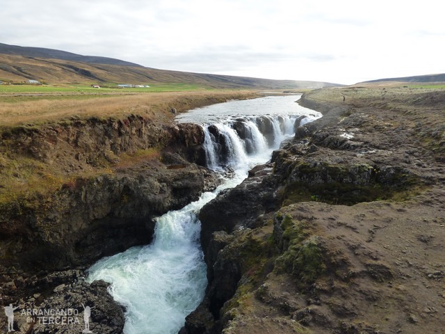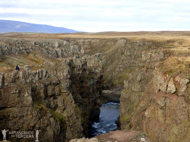 Abandonamos los magníficos paisajes de la península Vatnsnes y nos detenemos en el CAÑÓN KOLUGLJÚFUR. Aunque las comparaciones son odiosas, este pequeño cañón no es gran cosa si hemos visitado antes Fjaðrárgljúfur, mucho más espectacular. De todos modos no requiere mucho desvío.