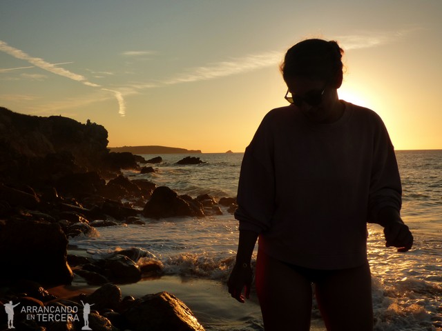 Finalizamos el día en una de las playas de COSTA QUEBRADA, cerca de Liencres. La elegida es la PLAYA DE CANALLAVE, donde nos relajamos leyendo y disfrutamos de un atardecer espectacular entre las caprichosas formaciones geológicas. Al principio está a reventar de gente pero poco a poco nos vamos quedando solos.