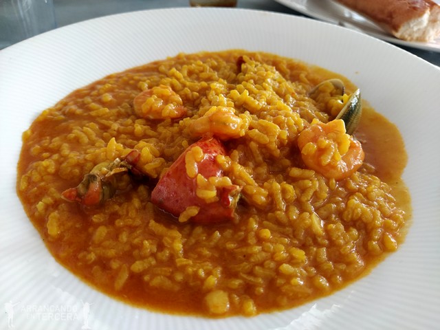Reventados y deshidratados después de unas dos horas en el agua nos damos el lujo de comer en El Rincón de la Canal. El señor muy amablemente nos ofrece adaptar cualquier menú a mi celiaquía y nos acaba sacando unas rabas de calamar rebozadas en pan de maíz, una ensalada de bonito, arroz con bogavante y mousse de limón. ¡Ah, y pan sin gluten! (primer sitio en Cantabria donde lo encontramos).