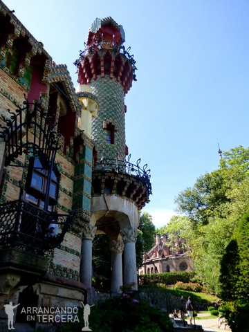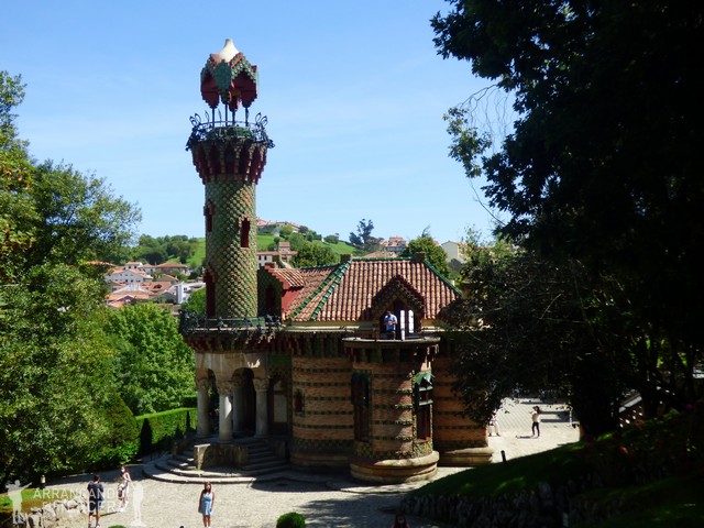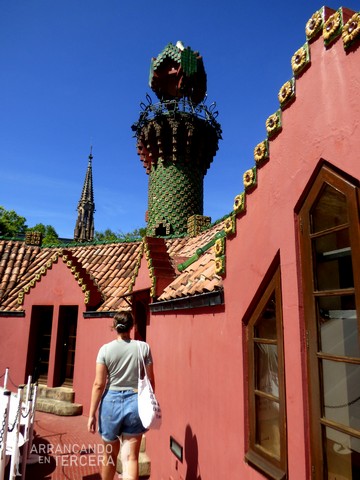 Después de recorrer varias veces los parking céntricos y verificar que están repletos, acabamos aparcando en una rampa en lo alto de Comillas, cerca del cementerio, que por cierto tiene una presencia impresionante. Acto seguido vamos al punto más turístico de Comillas, el CAPRICHO DE GAUDÍ, saltándonos la cola gracias a que cogimos las entradas con antelación.