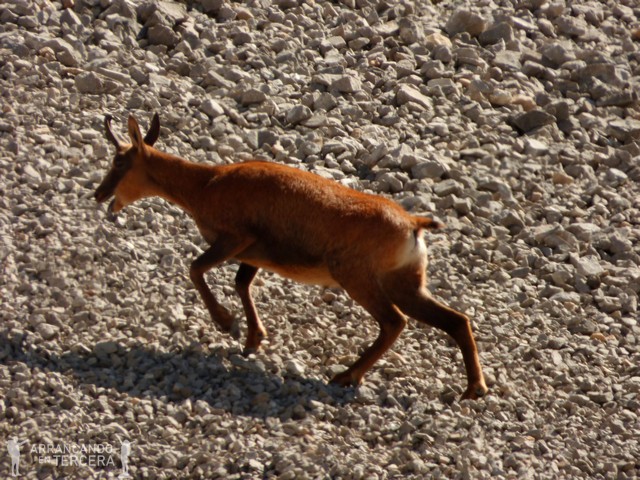 Durante la bajada vemos a lo lejos un sarrio brincando entre las piedras; y al llegar a la estación El Cable un montón de chovas piquigualdas, una especie de cuervos negros sin mucho miedo a acercarse a la gente para pillar restos de comida.