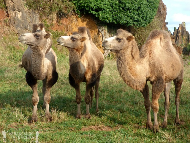 El camello bactriano proviene de Asia Central y tiene dos jorobas (el dromedario solo una) que usa para almacenar grasa a modo de reserva energética cuando no encuentran alimento en el desierto. Pueden beber unos 100 litros de agua de golpe, ya que sus glóbulos rojos permiten conservarla y liberarla poco a poco en función de la deshidratación del animal.