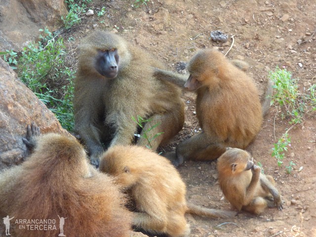 Los papiones de Guinea viven en sociedades muy jerarquizadas: los machos adultos duermen en lo alto del árbol (más seguro); debajo los machos jóvenes, que no pueden acercarse a las hembras; y abajo de todo las hembras. Afianzan sus lazos desparasitándose mutuamente.