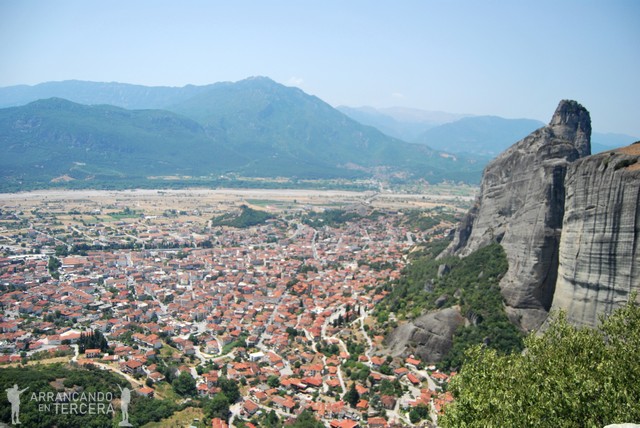 Acto seguido acabamos la circular y llegamos a KALAMBAKA, donde aparcar es fácil excepto en la calle principal donde multan todo lo que no sean paradas cortas. Nosotros lo dejamos en un acampado con toda la solana. Evidentemente tiene más oferta que Kastraki pero también está más lleno de gente.