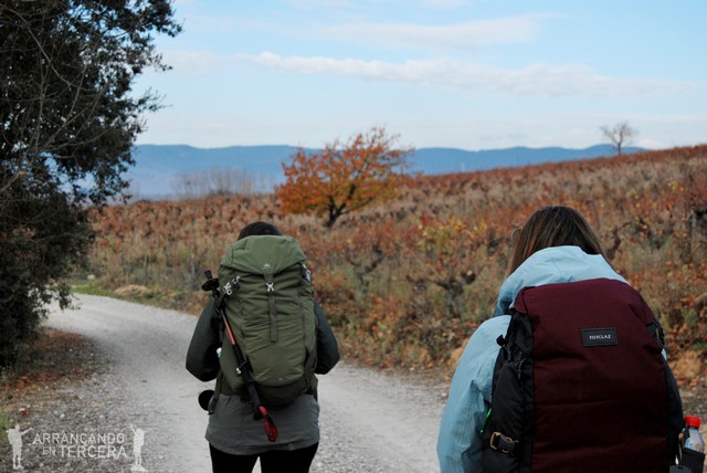 Con las pilas cargadas y la alegría de quien ha desayunado bien después de un rato pasando hambre, retomamos el Caminho. Vides, madroños, robles y encinas nos van abriendo el paisaje típico de El Bierzo. Estamos en temporada baja y apenas nos cruzamos a un par de peregrinos aparte de nosotros.