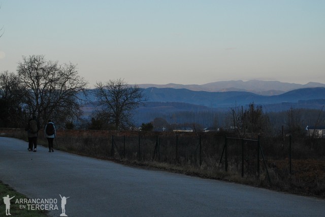 Nos vamos espabilando entre viñedos y los cantos de unos petirrojos, carboneros y cuervos madrugadores. Las ovejas y vacas pastan en los prados mañaneros, el aire nos refresca, hace buen día… La gente nos levanta el brazo con el clásico saludo al peregrino «¡Buen camino!».