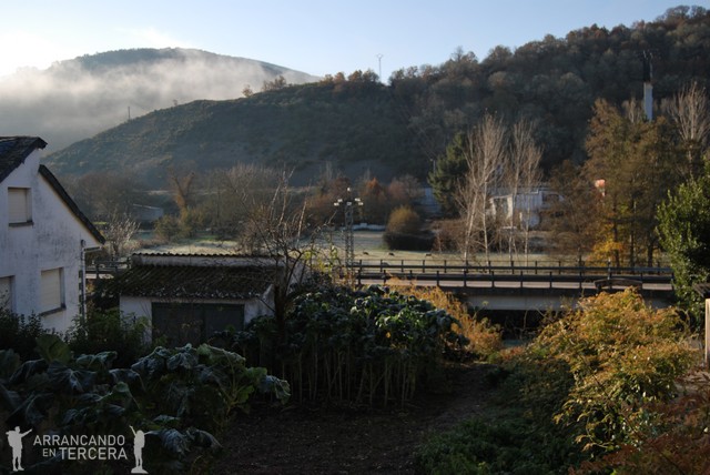 Trabadelo es un pueblo de gran tradición maderera y, como en la mayoría de sitios que cruzamos en el Camino, se nutre principalmente de la agricultura y la ganadería. En la foto se ven unos cultivos de berzas gallegas, una especie de acelgas con tallo alto (son como palmeras de acelgas).