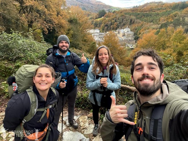Los paisajes naturales que nos rodean son como siempre una maravilla para los sentidos, pero estos peregrinos ya solo piensan en desayunar. Conforme nos acercamos a Samos se observa una muralla del siglo XVII conocida como «A Cerca».