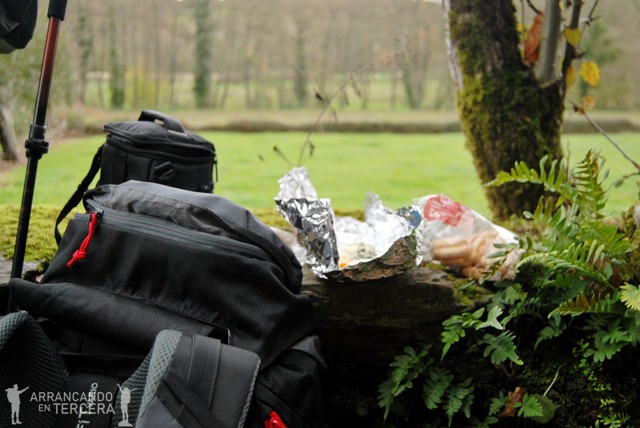 A las 2 y media de la tarde nos entra el apetito y hacemos una pequeña parada para comer picos de pan sin gluten con quesos que nos sobraron de la cena de ayer. ¡Aquí no se tira nada!