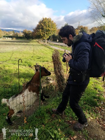 Continuamos bordeando el río Sarria por su margen derecho, de nuevo con los paisajes fluviales de ribera. En menos de lo que se tarda en jugar un abecedario y atravesando Aguiada (20,2 km), punto en el que la ruta confluye con la variante de San Xil, unas cabras sarrianas muy sociables nos dan la bienvenida a la ciudad.