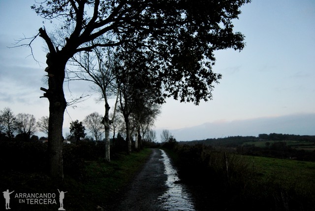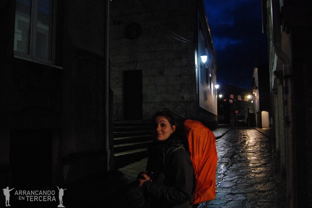 Nos despedimos de Ismael, que prefiere llevar un ritmo más lento por dolor de pies (quién sabe si nos alcanzará como ayer). Y así es como empezamos a andar antes de que se haga de día, caminando por la empedrada Rúa do Carmen hasta abandonar Arzúa.