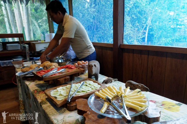 Muy a nuestro pesar (aunque han pasado cuatro horas y media sin darnos cuenta), Edgar nos dice que tenemos que volver al lodge para comer; no sin antes recordarnos que por estos lares también hay peces gato (lo que cenamos ayer) y rayas y anguilas eléctricas. Pero no os preocupéis, que prefieren los fondos y estos lagos son muy profundos.