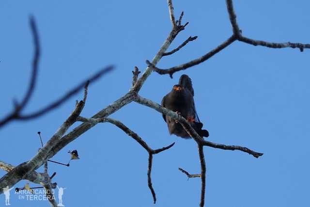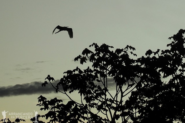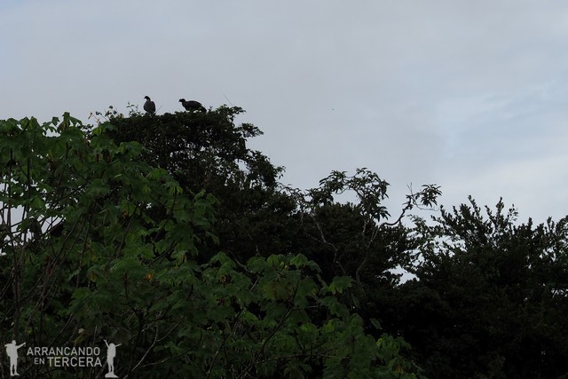 Los buitres negros o «gallinazos negros» son las primeras aves que vimos en Perú, y es que sobrevolaban ya la carretera que nos conducía desde Iquitos hacia nuestra lancha (no son endémicos de la selva, y de hecho los veríamos también en Paracas). Como buenos carroñeros, suelen planear desde las alturas o coronar las puntas de los árboles más altos en busca de presas muertas de las que alimentarse.