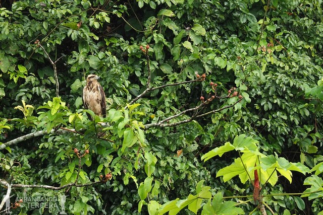 El busardo colorado, o como lo llaman en el Amazonas, «mamavieja», debe su apodo al plumaje blanco de su cabeza, que recuerda a las canas de la vejez. Esta rapaz pescadora acecha entre la vegetación hasta que localiza una presa en el agua y se lanza en picado a por ella, cogiendo el pescado con sus afiladas garras. También se alimenta de lagartos, roedores, pequeñas aves…