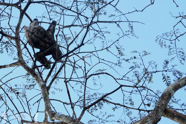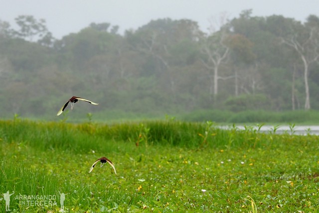 Otra de las aves típicas amazónicas es el «camungo» o «pava». Es un ave corpulenta, de aspecto que recuerda al pavo de corral. Vive cerca del agua y descansa en árboles, demarcando su territorio con sonidos que se escuchan a menudo por la selva. Suelen vivir en parejas y no se alejan mucho de las crías.