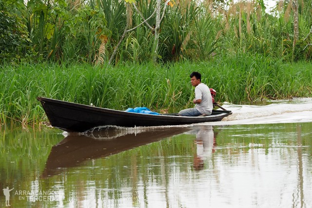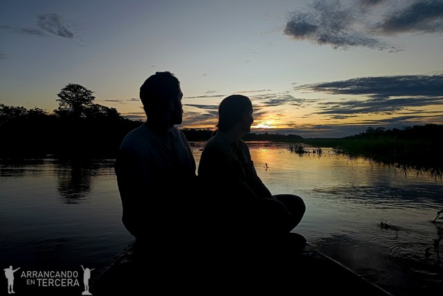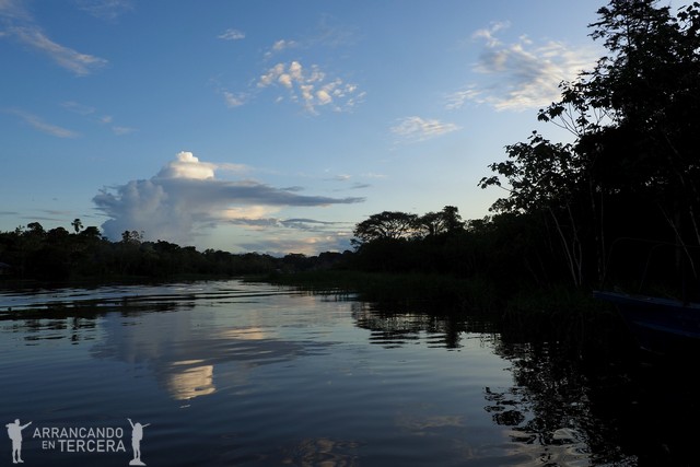 Durante el trayecto de vuelta nos cae otra lluvia tropical, más light que la de ayer, y nos damos cuenta de que nos hemos socarrado pese al cielo gris y el protector solar. «Dale chinito dale», le mete caña Edgar a Mayer antes de quedarse dormido en el bote. Cuando volvemos al lodge vemos que nuestra ropa empapada se ha secado un 50%. ¡No está mal!