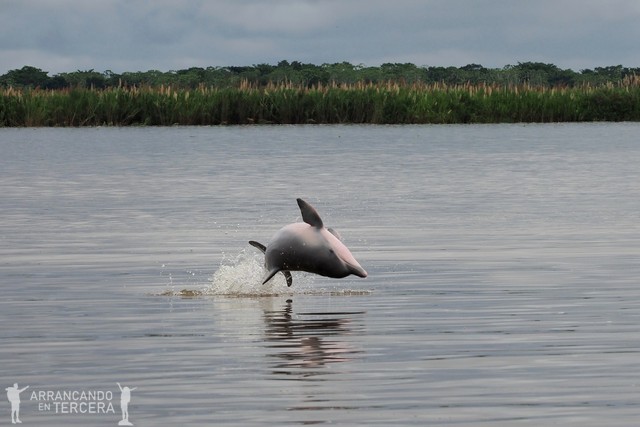 Por desgracia, el delfín rosado está en peligro de extinción debido mayormente a la destrucción de su hábitat y a su pesca accidental. Por ello son mucho más difíciles de ver; los de las fotos son todos delfines grises, que eran muy extrovertidos y se pegaron un buen rato nadando alrededor de nosotros.
