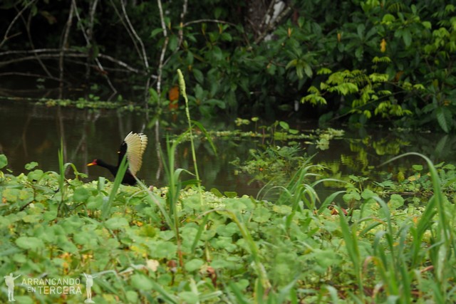 Empezamos la excursión en silencio, disfrutando de la paz y quietud de este paraíso tropical, interrumpida únicamente por los graznidos esporádicos de los escandalosos tuqui-tuquis, las aves exóticas más marroneras del Amazonas. A poco que se acerca la lancha alzan el vuelo entre estridentes y agudos chillidos.