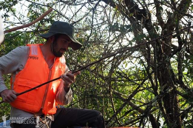 La barca se desplaza lentamente por la orilla y nosotros estamos con los cinco sentidos alerta, reactivos a cualquier sonido, cualquier rama moviéndose, cualquier estímulo que nos descubra algún bicho nuevo.