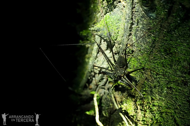 Encaramada a un árbol sin moverse un milímetro, vemos una tarántula hembra que se diferencia de la de ayer (un macho) en que posee un «abdomen» mucho más ancho.