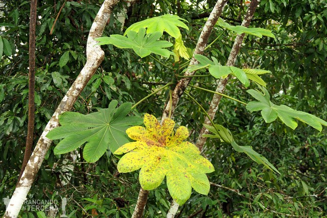 Edgar nos explica que para avistar animales es clave saber sobre sus costumbres. Si sabes qué árboles les gustan a los perezosos ya tienes medio camino hecho, y uno de ellos es la cecropia o «guarumo»; donde los perezosos comen, duermen, se aparean y crían. La cecropia es una especie pionera, es decir, de los primeros árboles que aparece en la selva tras un impacto dañino como un incendio. Otros árboles que les gustan son la mimosa (una acacia) y los ficus.