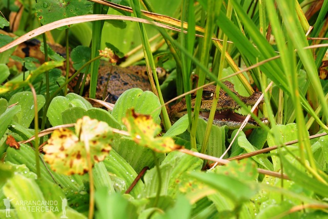 Id con los ojos bien abiertos entre los juncos porque a veces te encuentras sorpresas inesperadas… Un caimancete reposa muy bien escondido para tomar un poco el sol. Como expliqué en la entrada anterior, los reptiles (y los anfibios) necesitan de fuentes de calor externas para regular su temperatura, ya que no pueden producir calor como los mamíferos o las aves.
