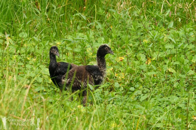 Una curiosidad de los tuqui-tuquis es que desarrollan un tipo de poligamia poco habitual en el mundo animal: es la hembra la que se aparea con varios machos. En la foto se puede ver una con sus tres polluelos diminutos.