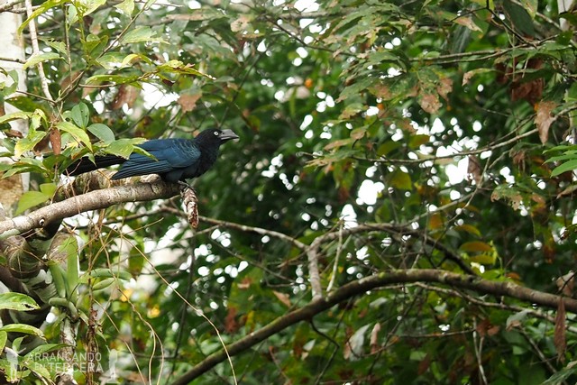 El garrapatero mayor o «locrero» es de la familia de los cucos, esos pájaros que dejan sus huevos en nidos de otras aves para que se los críen otros. El locrero no endiña sus polluelos en otros nidos, pero lo que sí hace es perseguir a las tropas de monos ardilla porque sabe que así tiene alimento asegurado.