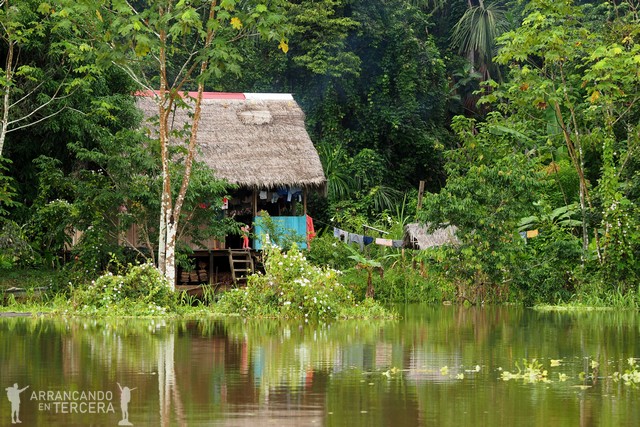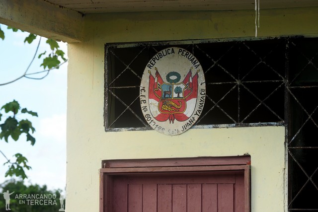 Finalmente, encontramos la escuela. Lamentablemente el hecho de que esté a tres horas de la civilización hace que pocos profesores quieran ir allí (el salario medio de un profesor en Perú es de 1200 soles, que son 300€), así que van una semana al mes y el resto del tiempo vuelven a la ciudad. El resto del tiempo, los «chibolos» (los niños) aprenden a remar y ayudan en el campo o en la pesca.
