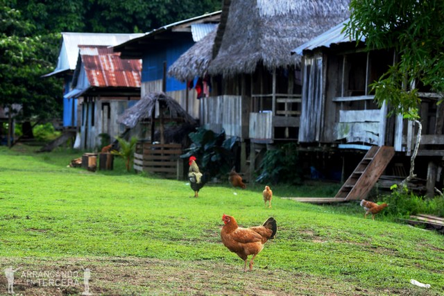 La economía del pueblo se basa en recolectar excedentes de la pesca y la agricultura para venderlos en Iquitos o cambiarlos por azúcar, sal, detergente… Edgar se lamenta de lo difícil que es salir de las comunidades amazónicas por culpa de la gestión del Gobierno y los elevados precios de la vida. Nos cuenta que él tuvo suerte porque sus hermanas habían salido a la ciudad y eso facilitó que él estudiara la carrera de Biología. Por poner un ejemplo de cómo está el mercado, un kilo de arroz cuesta 5 soles (1,25€). Si el salario mínimo es de 225€ es complicado, pero si encima vives a 3 horas de la civilización…