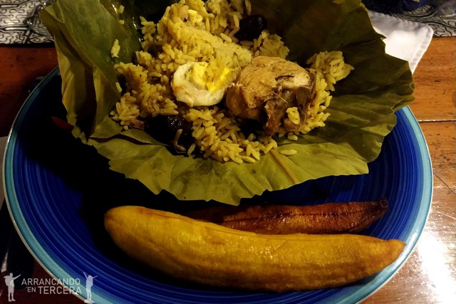 Después de una ducha vigorizante, nos ponemos las botas con la cena: un juane, banana asada y de postre una fruta muy mantecosa llamada «anona». Tal y como comentamos antes, los juanes son una comida muy típica del Amazonas y consisten en arroz con pollo, huevo duro y otras cosas; todo envuelto en una hoja de Bijao, procedente de la selva.